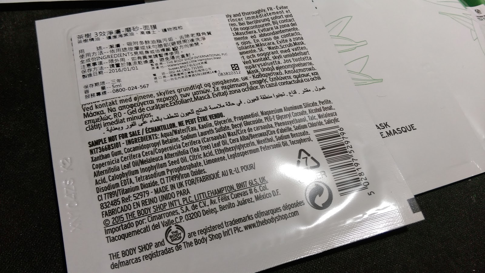 THE BODY SHOP茶樹3效淨膚-磨砂-面膜 5ml